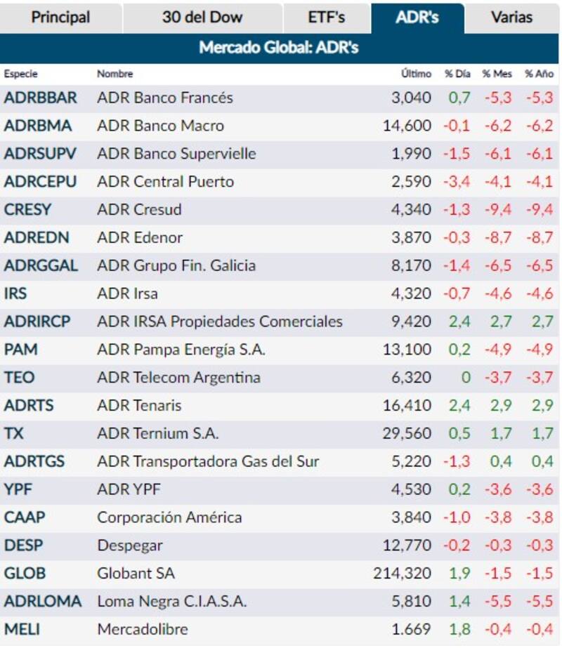 Pese al tímido avance de Wall Street, los adrsno lograban definir aún una tendencia. Mostraban comportamientos alcistas de hasta 2,4%, liderados por Ternaris e IRSA Propiedades Comerciales, y caídas de hasta 3,4%, con Central Puerto a la cabeza. Mismo escenario podría verse en la plaza bursátil local, por lo que el S&P Merval de la Bolsa porteña se mantenía prácticamente neutro en los 50.775 puntos.