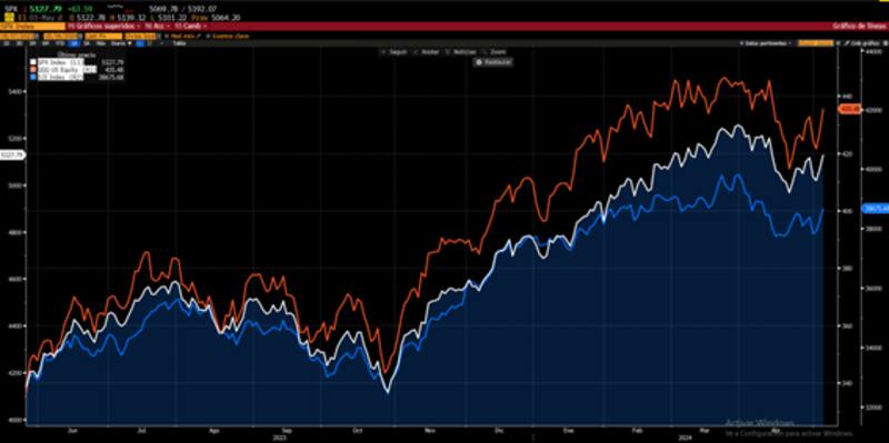 "Las acciones encontraron en la fuerte suba de tasas en EE.UU. un viento de frente para extender las subas del primer trimestre del año. La presión sobre las tasas en EE.UU. podría persistir en el corto plazo. Creemos que 2024 es un año donde el crecimiento será moderado, pero bueno, favoreciendo a los activos más riesgosos", dijo.