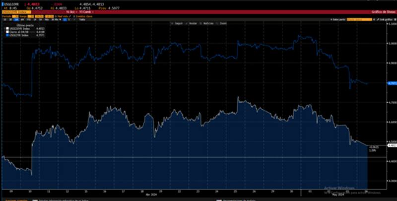 La tasa a 10 años pasó de 3,8% a 4,7% entre enero y abril, y cayó a 4,48% la última semana.
