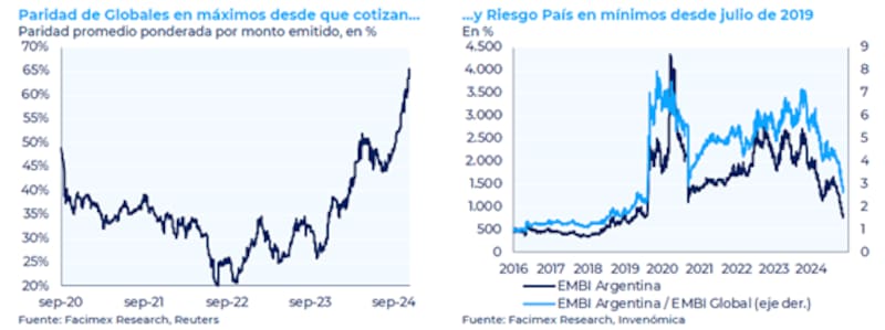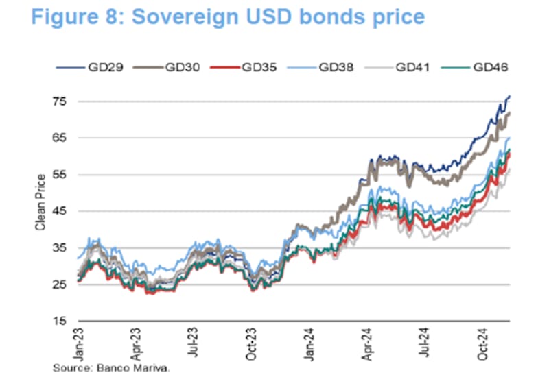 Los analistas de Research Mariva agregaron que, a pesar del viento en contra externo que ha comenzado a afectar a los mercados emergentes debido a la incertidumbre ante las elecciones del 5 de noviembre en Estados Unidos, los buenos fundamentos económicos a nivel local están dando soporte a los precios de los bonos soberanos.