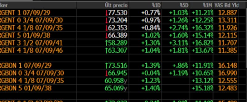 Finalmente, la deuda de mayor plazo como el GD41 y GD46 registran subidas de entre 13% y 16,8% en el último mes.