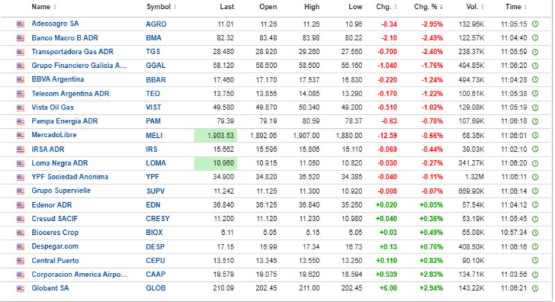 Por el lado de las subas, Globant y Corporación América se destacan, con ganancias de entre 2,5% y 2,9%.