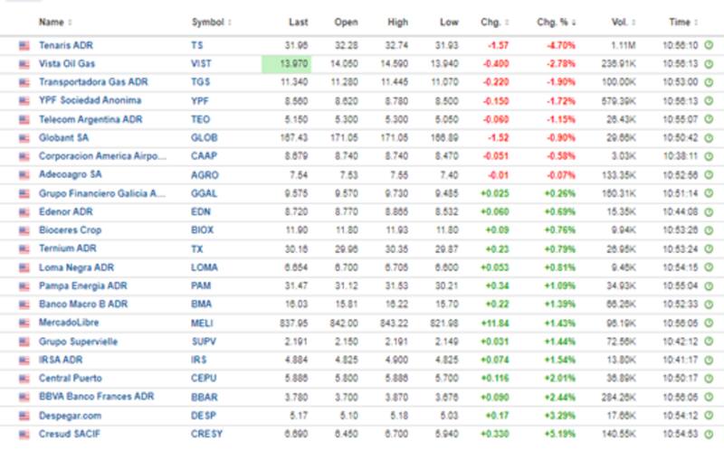 Los ADR de Tenaris y Vista caen 4,7% y 2,8%, arrastrados por la baja del 3% del petróleo. En cambio, Cresud y Despegar son las que más suben, con avances de 5,2% y 3,2% respectivamente.