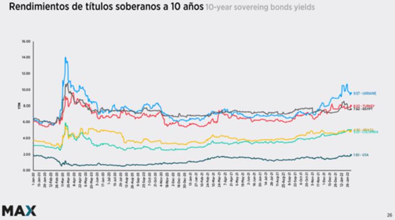 A su vez, en términos comparativos, Argentina rinde casi tres veces lo que rinde Ucrania, un país en crisis por la escalada de tensiones con Rusia, cuyos bonos rinden 9,6%. De esta manera, el mercado ve que la deuda ucraniana es menos riesgosa que la de la Argentina.