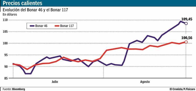 El bono centenario pasó a premiar con un rendimiento del 7,08% tras el 8,03% que supo rendir a comienzos de junio, lo que implica una suba de precio del 13% en el mismo periodo. En el caso del Bonar 2046 el rendimiento cayó a 6,82% desde los 7,55% de tasa interna de retorno que mostraba a comienzo de junio, un avance de precio de 9,6%.