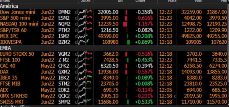 El Nasdaq cae 25% desde sus máximos y se encuentra en lo que se conoce como "mercado bajista". Por su parte, el Dow Jones y el S&P500 se encuentran en terreno correctivo al caer más del 10%. El S&P500 pierde 16% y el Dow retrocede 11,7%.