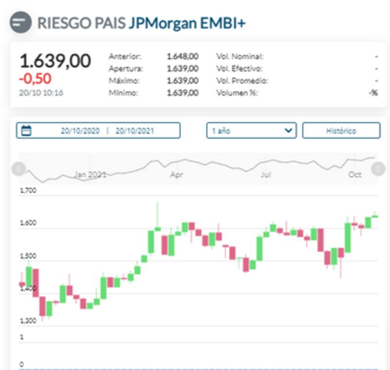 Es decir, acumula una suba de 276 puntos en el año y de 544 puntos desde el canje de deuda soberana de septiembre de 2020.