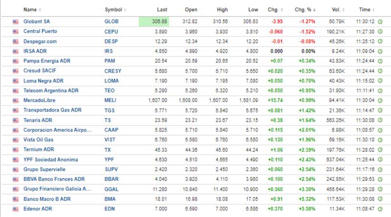 Del lado bajista, solamente Globant, Central Puerto y Despegar operan a la baja, con caídas de 1,3% 1,5% y 0,08% respetivamente.