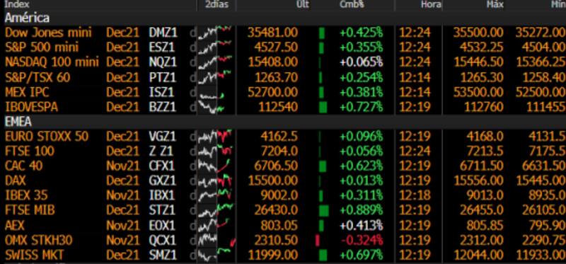 El Dow Jones y el S&P500 operan en verde, con ganancias de 0,42% y 0,35% respectivamente. Más moderado, el sector tecnológico sube menos, con el Nasdaq avanzando 0,06%