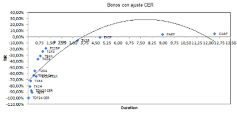 Actualmente, los bonos de la curva CER operan con tasas ultra negativas. En el tramo corto se ven tasas reales de entre -60% y hasta -100% real.