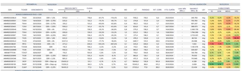 Sin embargo, tras la publicación del dato, los bonos rebotaron en la ultuma hora de operaciones. El TX24 aumentó 1,2% (reacción más aguda), el T2X4 y T6X4 subieron 0,2% ambos.