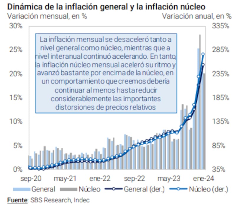 "Los nuevos datos de alta frecuencia le imprimen un riesgo a la baja a nuestra proyección del 17,5% mensual para febrero, dado que las métricas mensuales del IPC-OJF navegan en torno al 14% mensual. Hacia adelante, marzo suele ser un mes desafiante en materia inflacionaria", advirtió Yarde Buller.
