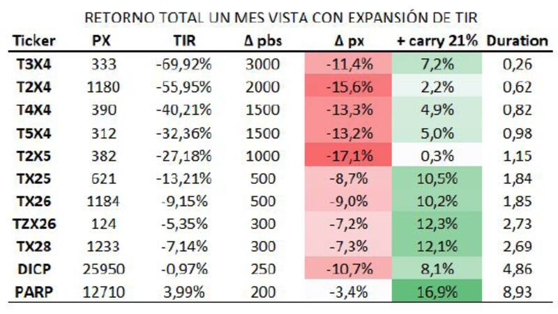 "Las diferentes opciones convergen a una curva flat en torno al 100% de TNA con escasa probabilidad de ganancias de capital", comentaron.