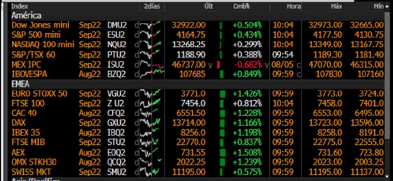 En el viejo continente también se ven subas, con el Stoxx50 trepando 1,42%, mientras que el CAC40 de Francia, el DAC de Alemania y el Ibex35 de Madrid son las bolsas que más suben, con avances de 1,2% en promedio.