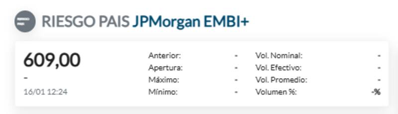 Con la baja reciente en los bonos, el riesgo país vuelve a subir por encima de los 600 puntos y se ubica en 609 puntos básicos.