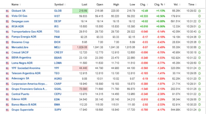Del lado ganador, Globant, Vista y Despegar se mantienen al alza y con leves subas.