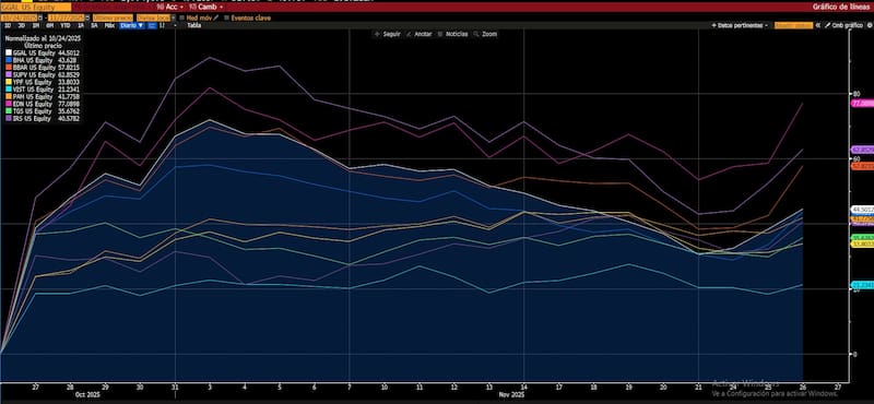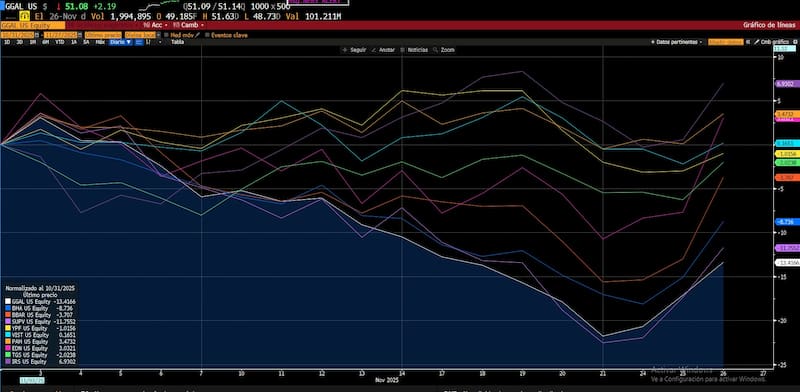 Otros papeles como TGS, Corporación América, Cresud, IRSA, Vista y Globant también vieron parte del rally, con subas de similar magnitud.