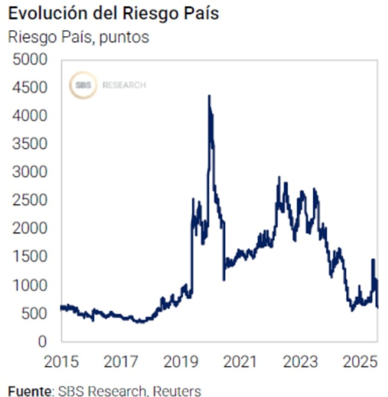 El fuerte rally de la deuda hizo que el riesgo país colapse desde los 1000 puntos antes de las elecciones hasta los actuales 650 puntos.
