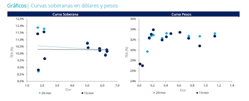 Es decir, que gracias a la fuerte suba en los precios de los bonos, la curva se tornó positiva y cotiza con tasas más bajas, reflejando una mayor confianza por parte del mercado sobre la capacidad y voluntad de pago del soberano.