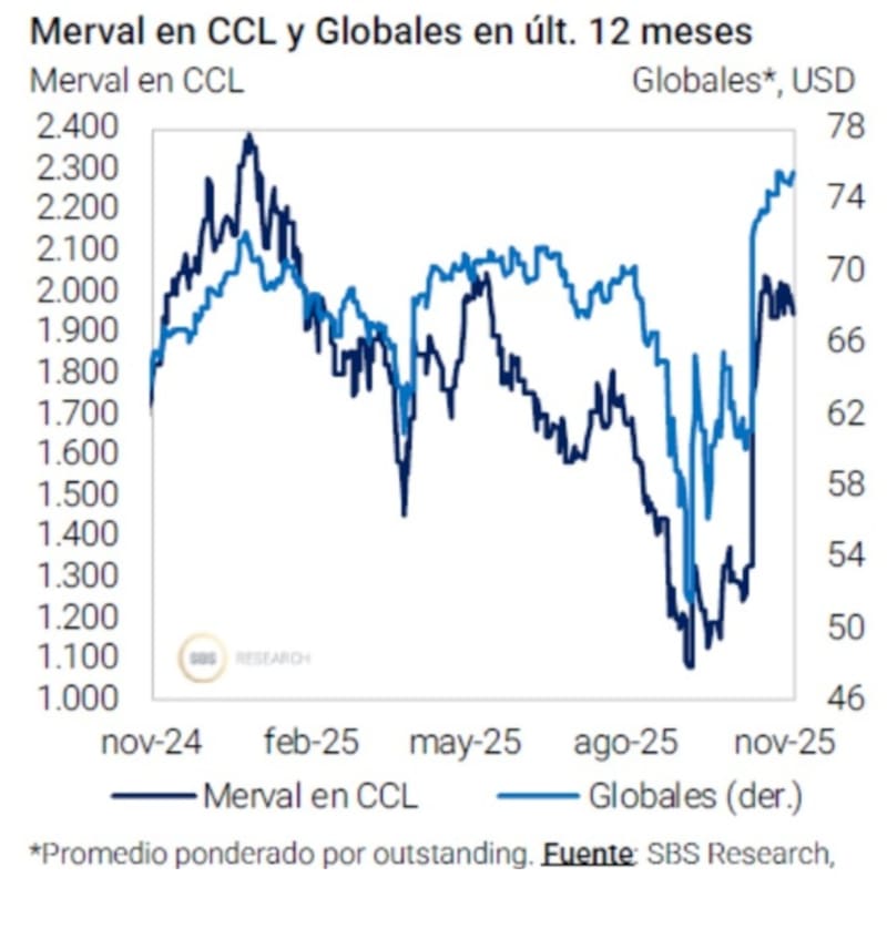 “Nos encontramos con una curva soberana rindiendo en valores de enero, mientras que el Merval todavía permanece lejos de esos u$s 2400. No obstante, más allá de que la balanza pareciera estar inclinada hacia las acciones en términos de potencial de rentabilidad, no podemos dejar de mencionar que para que ello suceda será totalmente necesario que las compañías muestren sólidos balances con crecimiento no solamente en ingresos sino también en resultado neto, algo que ha sido difícil a lo largo de 2025”, dijo Vlassich.