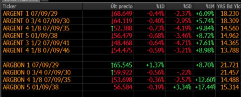 La renta fija argentina acumula una merma de entre 3% y 5% desde los máximos previos.