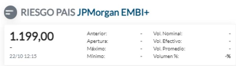 Por lo tanto, la caída de los bonos empuja al riesgo país al alza, el cual se ubica en 1199 puntos.
