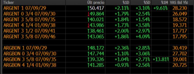 Con la suba actual, los bonos acumulan una ganancia del 8,1% en lo que va del mes y del 23,8% en lo que va del año.
