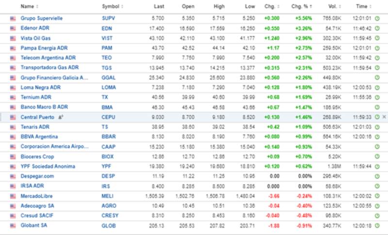 En cuanto a los ADR, estos muestran en su mayoría ganancias lideradas por Grupo Supervielle, que sube 5,5%. Le sigue Edenor, Vista, Pampa, Telecom, TGS y Grupo Financiero Galicia, con un rebote de 2,2% y 3,2%.