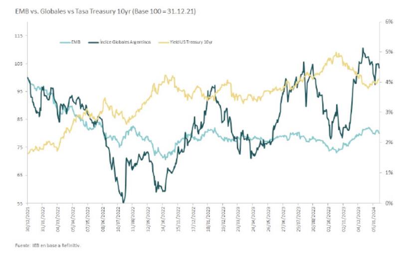 "La sensible tasa de los bonos del tesoro a 10y trepó 18 puntos básicos la semana pasada, por encima del 4%, afectando a los mercados en vías de desarrollo tanto en la deuda soberana como el de acciones. Nuestros Globales se venían moviendo en línea con el contexto y sin drivers después del empujón que les dio a los precios el acuerdo a nivel staff con el FMI", sostuvo Truffa.