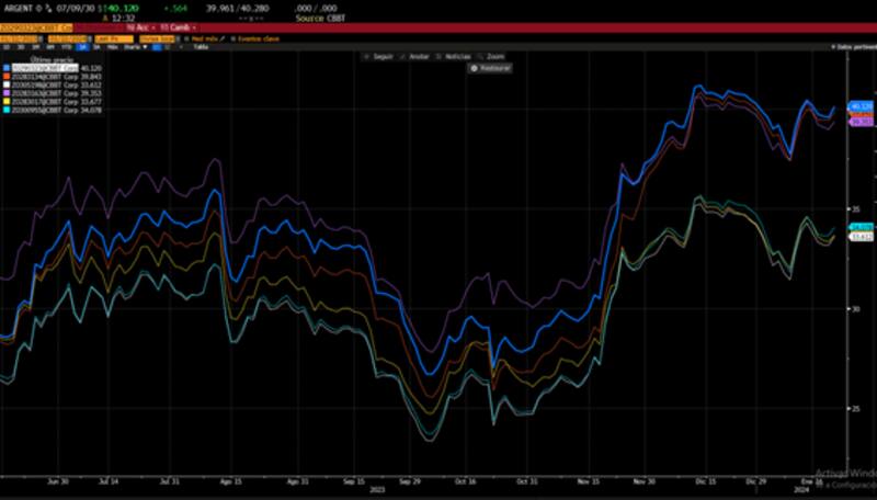 En el último mes, los bonos locales operan con caídas de entre 1,7% y 3,5%, por lo que permanecen dentro del proceso correctivo iniciado en diciembre pasado.