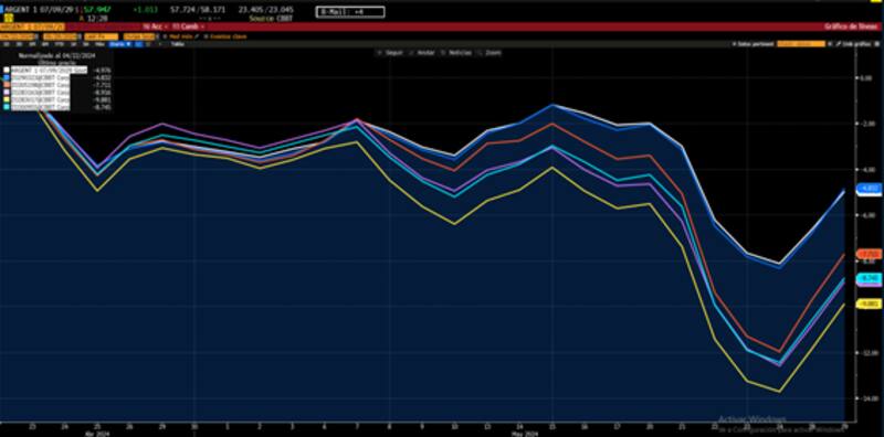 Sin embargo, aun con el rebote actual, desde sus picos recientes alcanzados a fines de abril, los Globales muestran perdidas en todos los tramos de la curva.