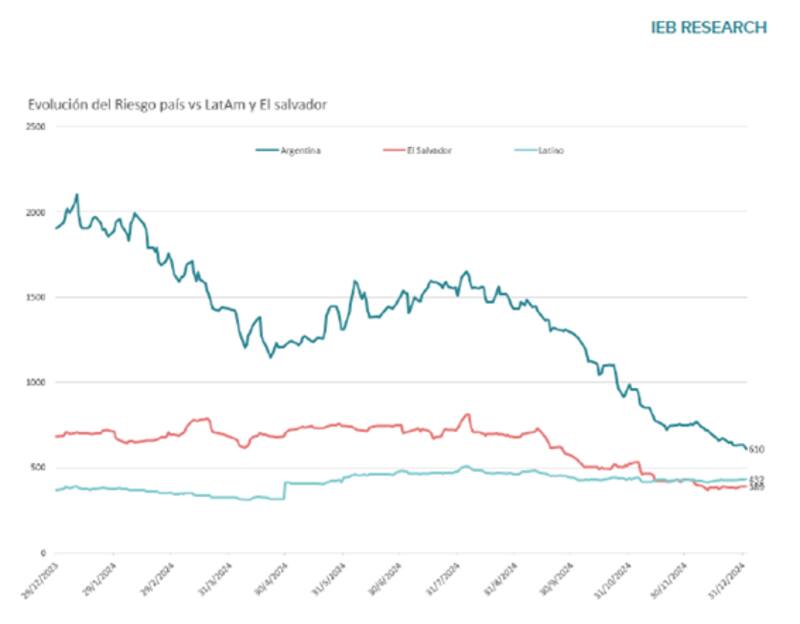La compresión del riesgo país en el último año fue impresionante, pasando de 2900 puntos hasta los 610 puntos actualmente.