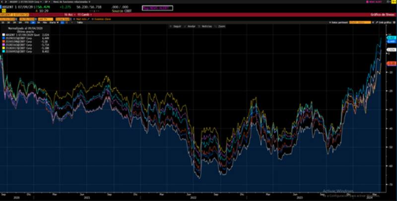 Por su parte, los bonos del tramo medio, a 2035 y 2038 registran avances de 2,1% y 1,8%, mientras que los títulos a 2041 y 2046 muestran una ganancia de 2% y 1,78% respectivamente.