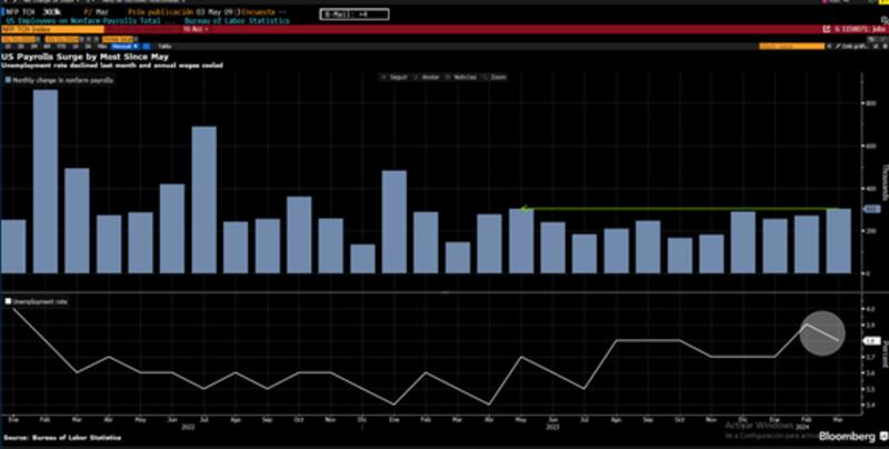 Tras la publicación del dato de empleo, los operadores redujeron las apuestas sobre las probabilidades de que la Reserva Federal baje las tasas en junio, bajándola a 50%.