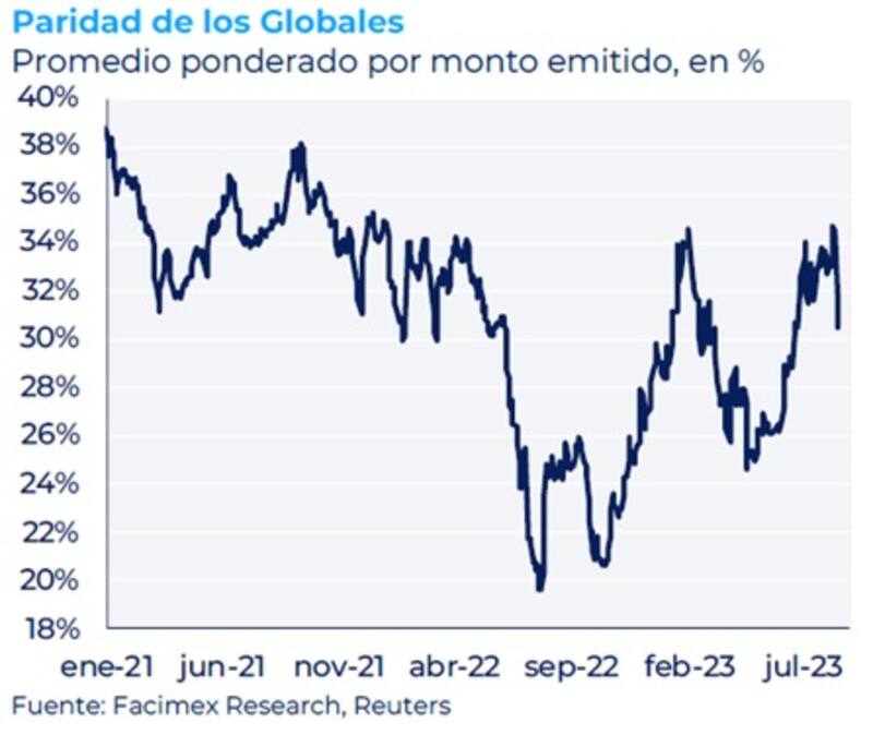Actualmente, las paridades se ubican en niveles de 31% en promedio, habiendo tocado máximos recientes de 34,5% antes del resultado electoral.
