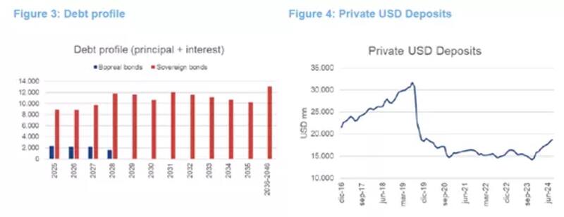 La clave igualmente hacia adelante sigue siendo la dinámica de las reservas, ya que un crecimiento en dicha variable podría disminuir los riesgos de un eventual incumplimiento en el mediano plazo.