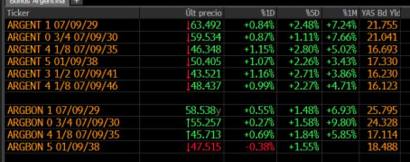 El GD29 y el GD30 subieron 10% y 11,3% respectivamente, mientras que los bonos del tramo medio y largo avanzaron entre 10,9% y 12,7%.