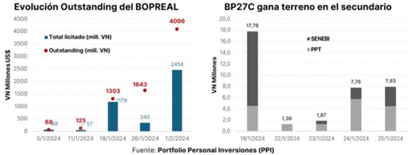 Concretamente, en la licitación de esta semana, hubo una altísima demanda por el Bopreal 2027 (BPO27).