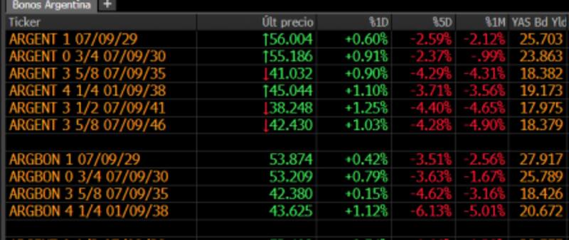Los bonos argentinos muestran un rebote a comienzo de la jornada.