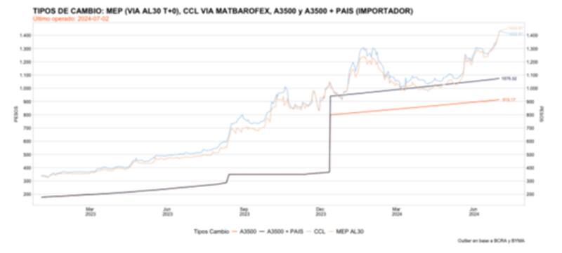 "La cuestión cambiaria, que en julio perfila complicada luego de un junio bastante decepcionante, también está aportando en dicho sentido, dada las manifestaciones del propio equipo económico respecto de la necesidad de que el BCRA cuente con niveles de liquidez considerables en moneda extranjera para reducir los riesgos de salida del CEPO. Esos niveles aún estan lejos y en julio podrían alejarse aún más", detallaron.
