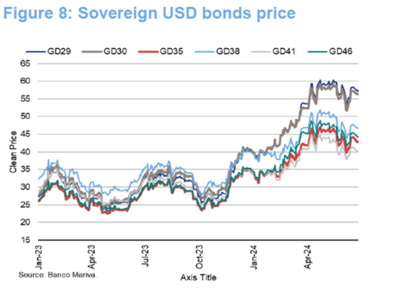 "Hay un entorno adverso para los bonos soberanos. A falta de reservas, crecen las probabilidades de una reestructuración en 2025. Las paridades argentinas suelen tener un comportamiento sumamente tendencial, donde suben o bajan a lo largo de periodos sostenidos de tiempo. En vista de esto, preferimos reducir la exposición a los bonos argentinos hasta que aparezcan señales de recuperación", advirtió.