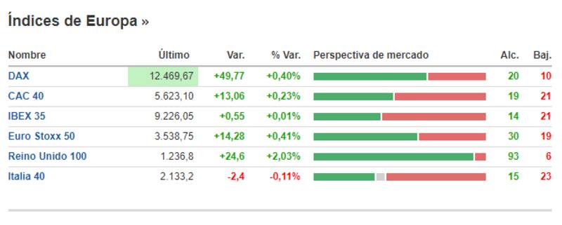 Al inicio de las operaciones, el índice FTSE-100 de la bolsa de Londres subía un 0,60%, el DAX de Fráncfort caía 0,20% y el CAC-40 de París estaba en baja de 0,20%.