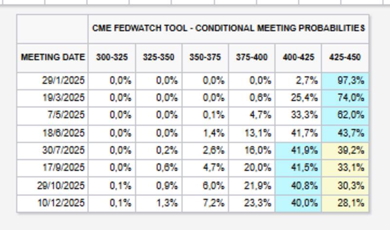 El primer recorte se daría recién en julio. El mismo seria de 25 puntos básicos, hoy con 42% de probabilidad.