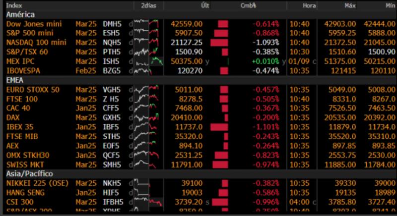 En el acumulado del año, los tres índices operan en rojo, con una baja de 0,67% para el Dow Jones, mientras que el S&P500 y el Nasdaq caen 0,4% en promedio en 2025.