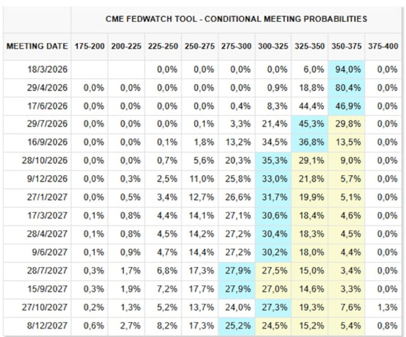 El mercado espera un recorte de tasas de la Fed de 50 puntos básicos en 2026. Las tasas de los bonos del tesoro americano siguen en niveles bajos y en mínimos del año.