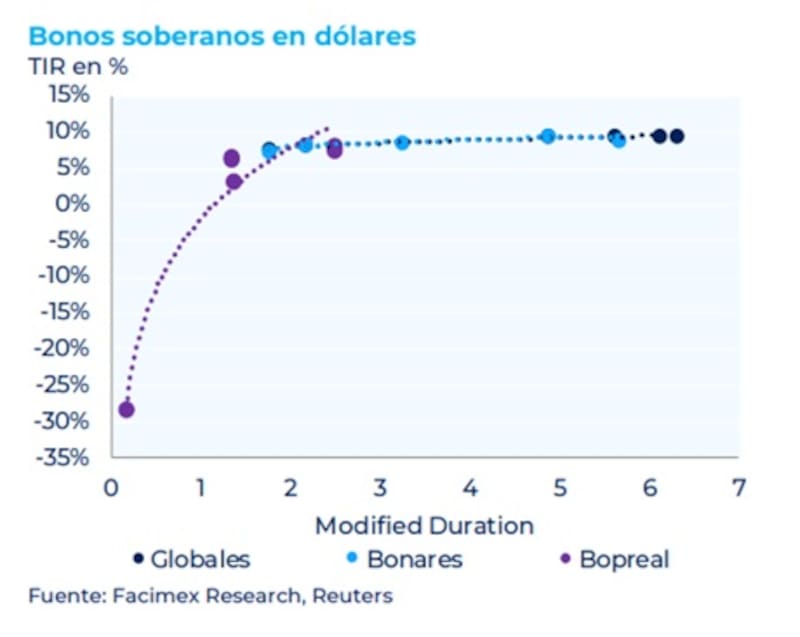 “Continuamos favoreciendo la exposición a la curva hard d ollar local, donde identificamos un mayor potencial de compresión de spreads , especialmente en AL30 frente al comportamiento reciente de los Globales de similar duration”, dijeron.