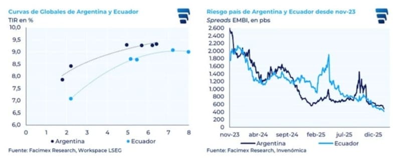 En particular, Ecuador tiene un riesgo país de 485 puntos, mientras que el argentino es de 515 puntos.