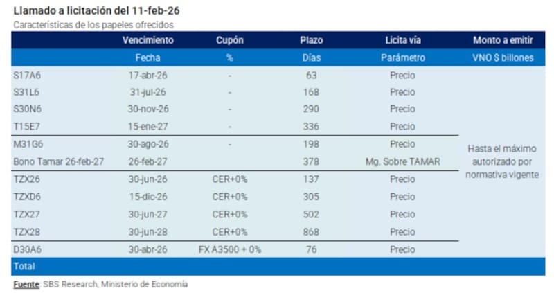 En el caso de los bonos CER; ofreció títulos a junio (TZX26), diciembre (TZXD6), junio de 2027 (TZX27) y junio de 2028 (TZX28).