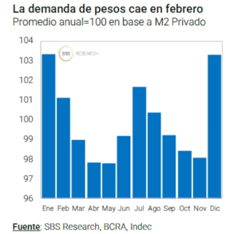 Luego, se registra nuevamente una merma en la demanda de pesos hasta su nuevo piso en noviembre, para luego volver a reiniciar su ciclo alcista.