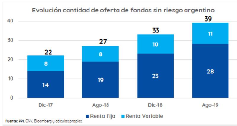 “El patrimonio de este tipo de fondos creció un 150%, que compara con una caída del orden del 6% de la industria en general en el mismo período -teniendo en cuenta, lógicamente, la depreciación del peso. En tanto, se agregaron unas 12 opciones, sumando en total cerca de 40 diferentes alternativas. De ese total, 27 (o 70% del total) son fondos de Renta Fija, y 12 de Renta Variable.; mientras que, si lo medimos en función de la moneda del fondo, 28 en dólares y 11 en pesos , explicaron desde PPI.